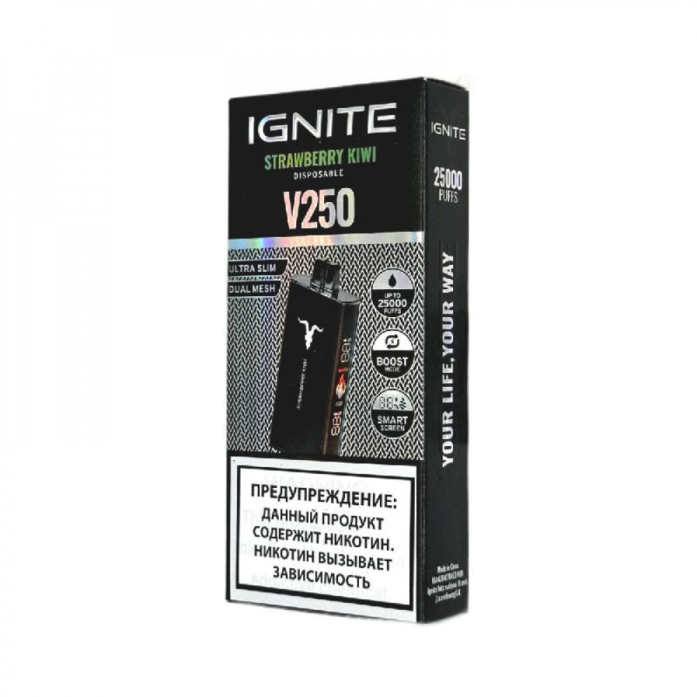 Электронная сигарета Ignite V250 Black 25000 - Strawberry Kiwi (Клубника киви) - купить в Чернушке