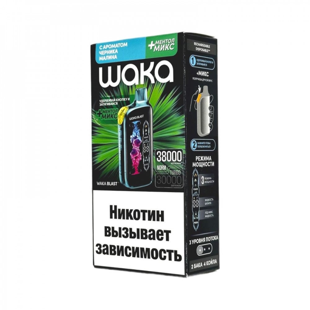 WAKA BLAST 38000 Hard - Черника малина + ментол микс - купить в Чернушке
